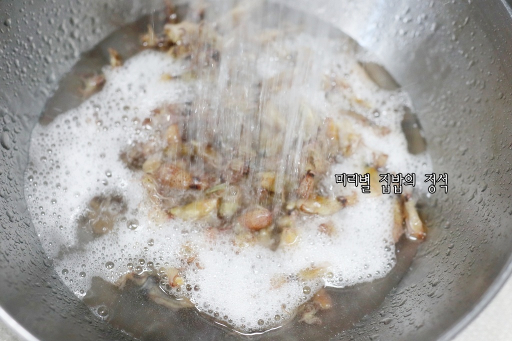 그냥 볶으면 딱딱하기 때문에 불려주는 과정을 거쳐야 식감이 부드러워집니다.