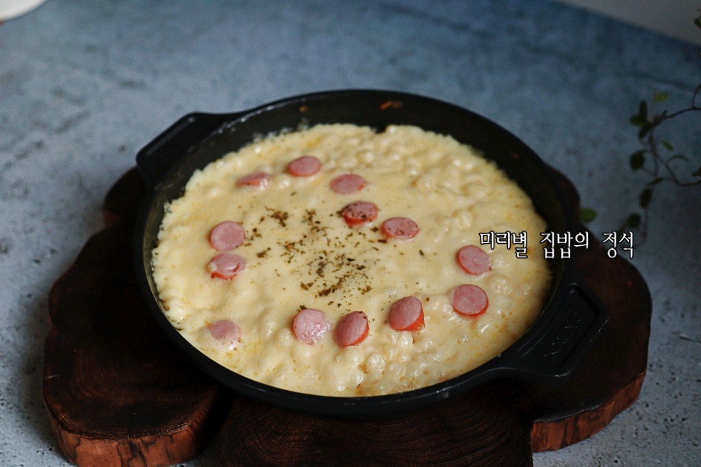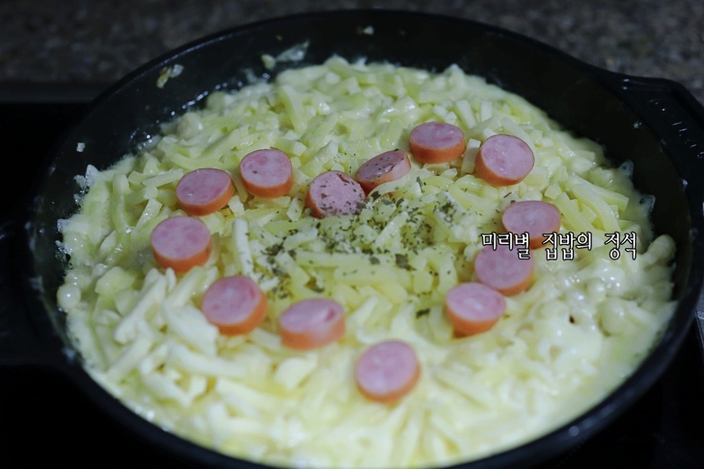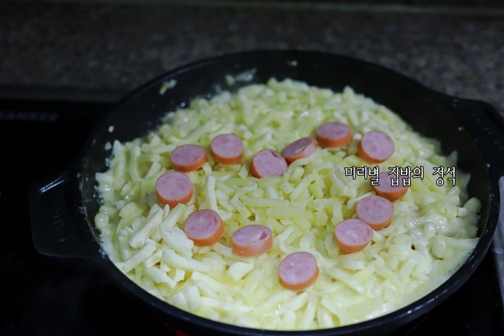 뚜껑을 덮어 중약불로 모짜렐라치즈가 녹을 때까지 익혀주세요~