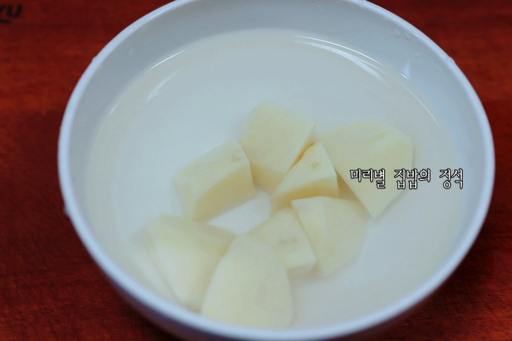 감자 1개는 껍질을 벗겨 한 입 크기로 썰어