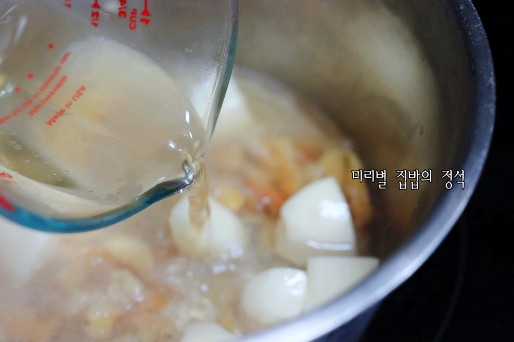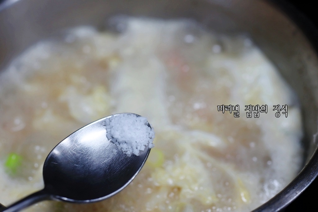 냉장고에 숙성시켰다가 점심에 끓여드시면 맛있게 먹을 수 있답니다