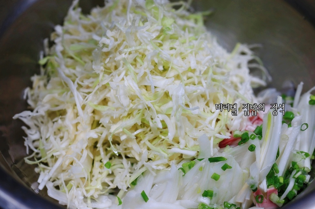 양배추의 아삭한 식감이 매력적이었던 양배추전~!! 냉동새우살과 베이컨까지 넣어 더 식감이 좋았는데 저녁메뉴로 먹어도 넘 맛있었고 안주 삼아 먹어도 넘 맛있었답니다.