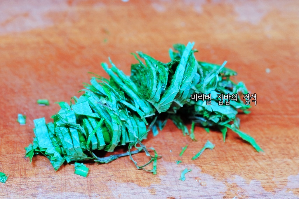 반 자른 후 돌돌 말아 채썰어 잘 풀어주세요~