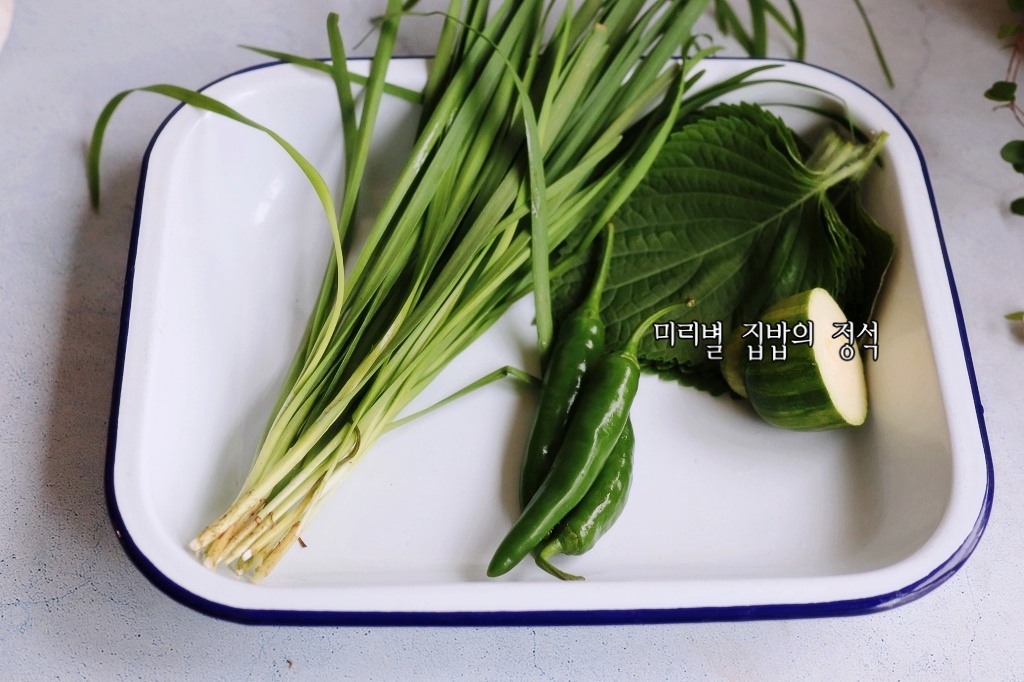 반죽에 부추, 애호박, 청양고추, 깻잎을 넣어 잘 섞어주세요~