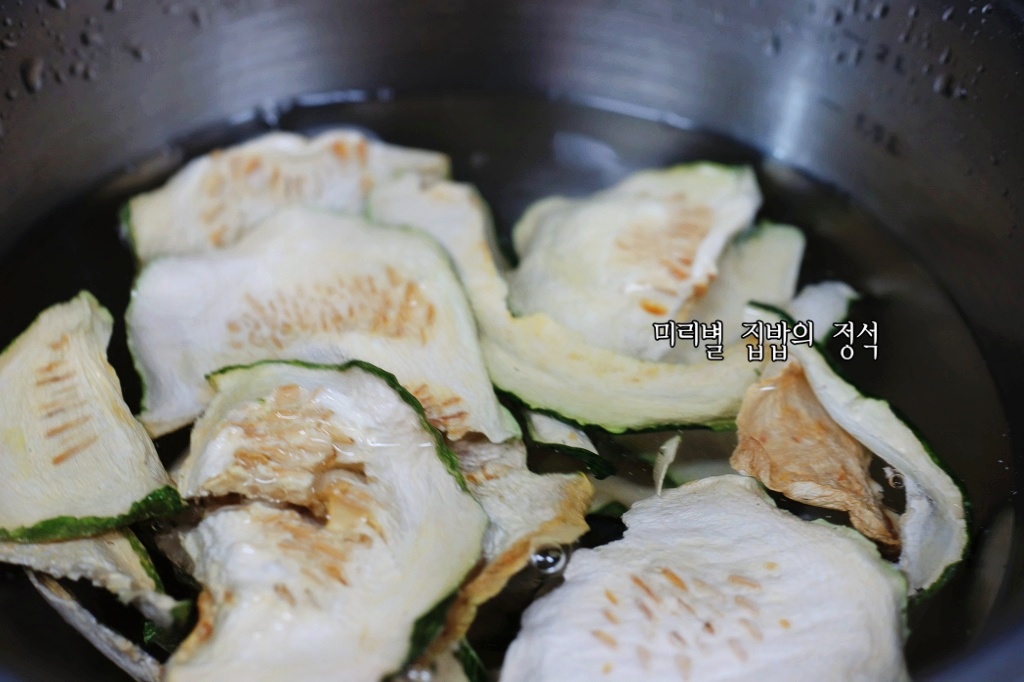 불린 호박고지는 물기를 꼭 짠 후 넣어 끓여주었습니다.