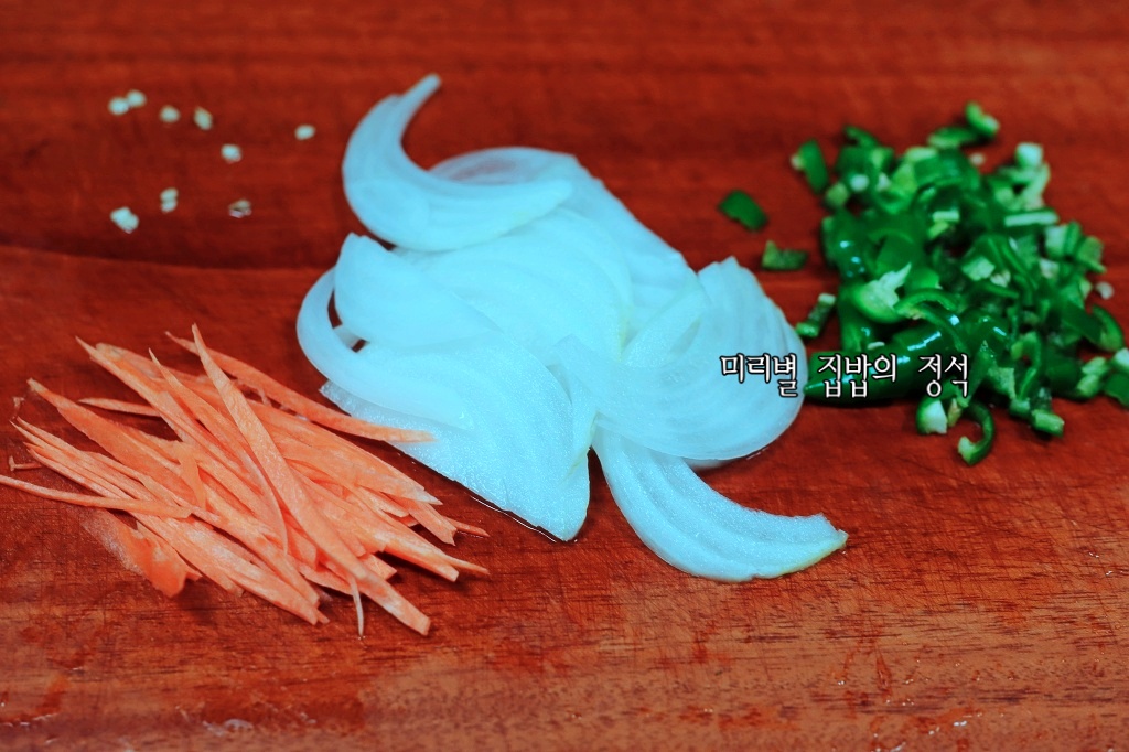 양파 1/4개는 가늘게 채썰고
