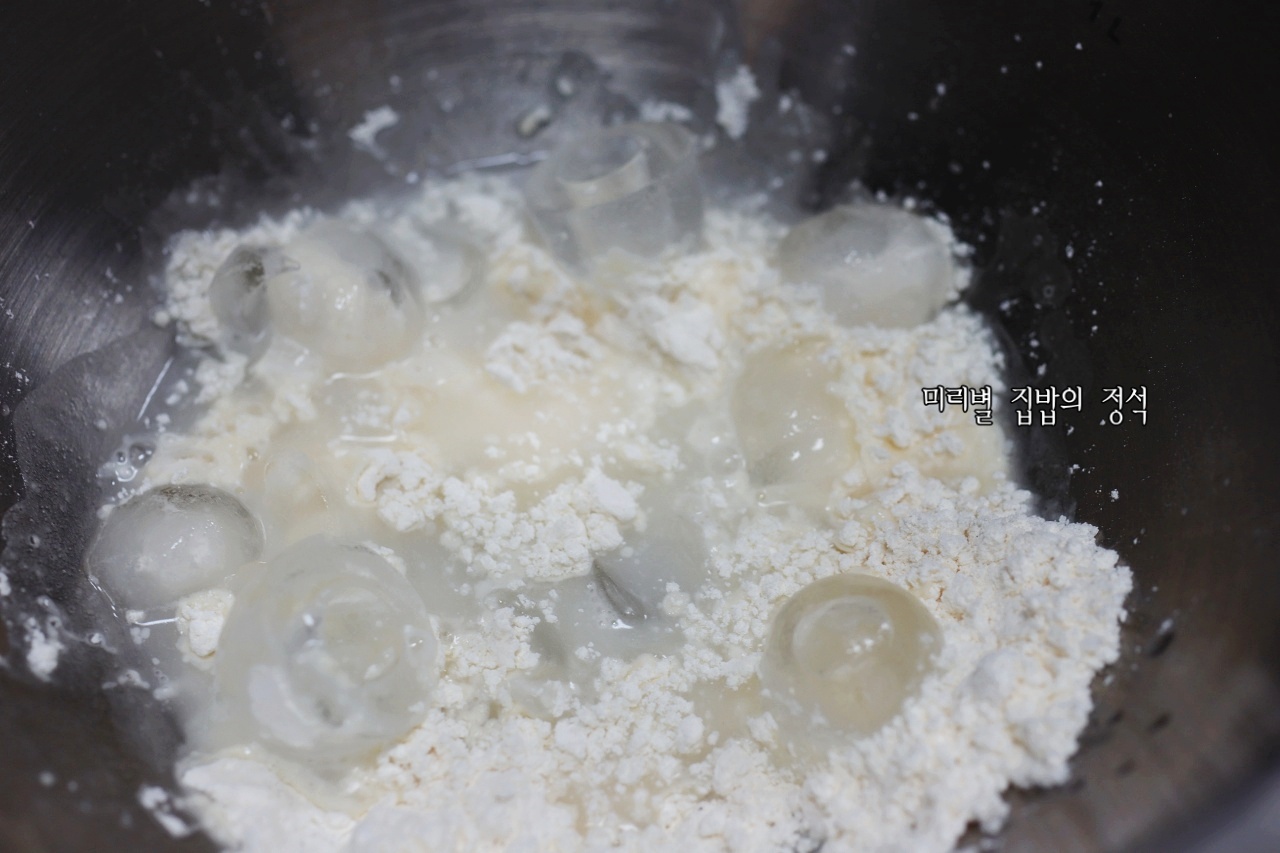 저는 부침 가루와 튀김가루를 섞어서 부침개반죽을 만들었지만 계란으로 만드셔도 되세요~