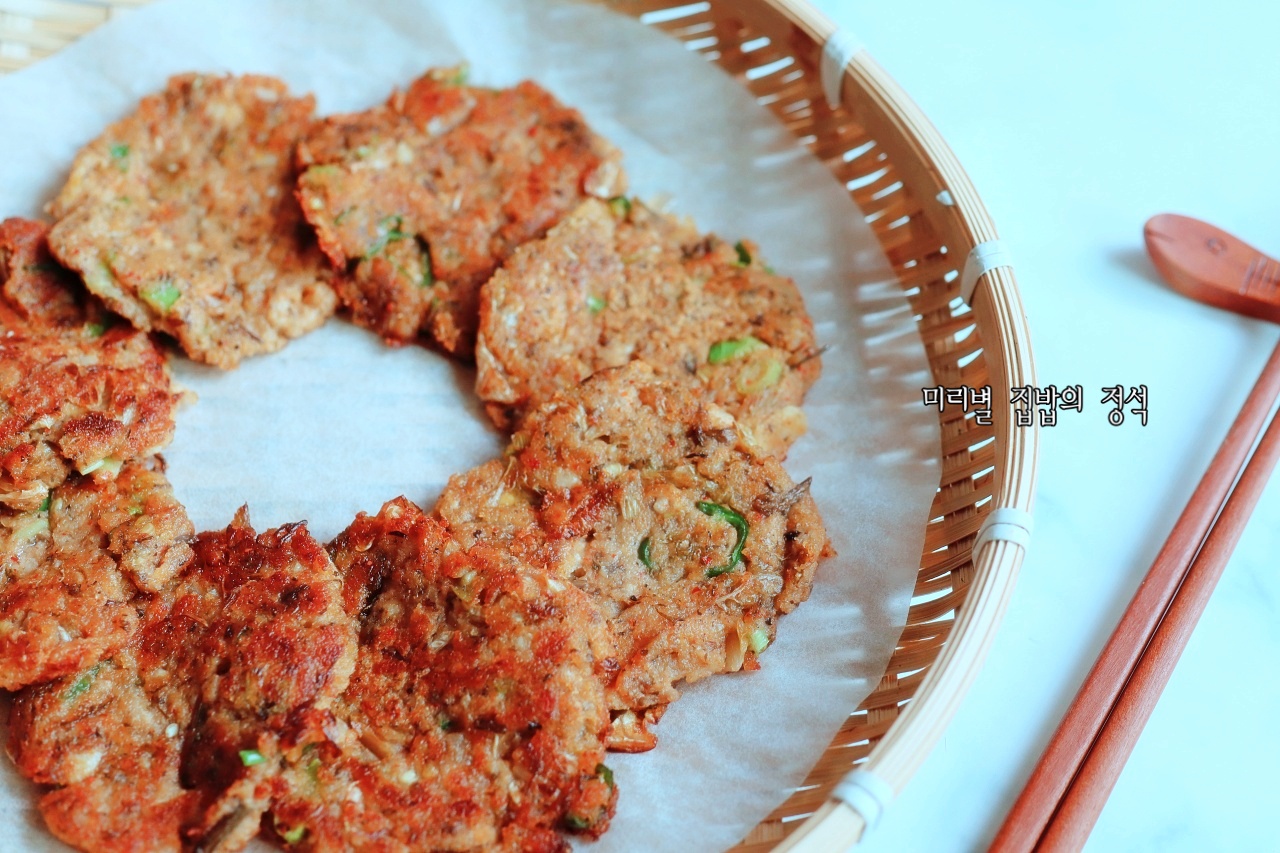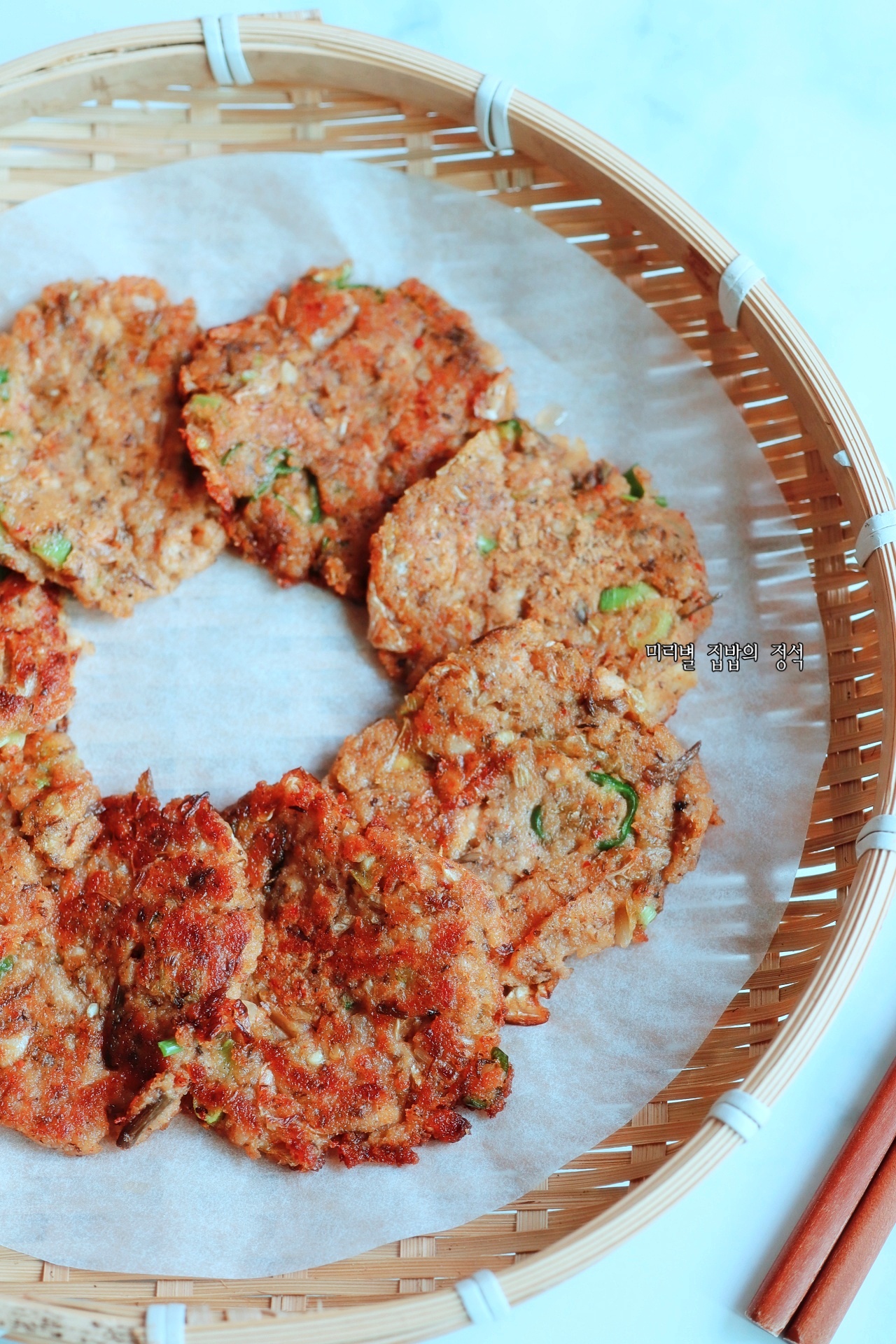 냉동실에 있던 콩 비지 꺼내서 이번에 콩비지 요리로 김치비지전을 만들어 보았는데 담백한 맛이 매력적이었습니다.