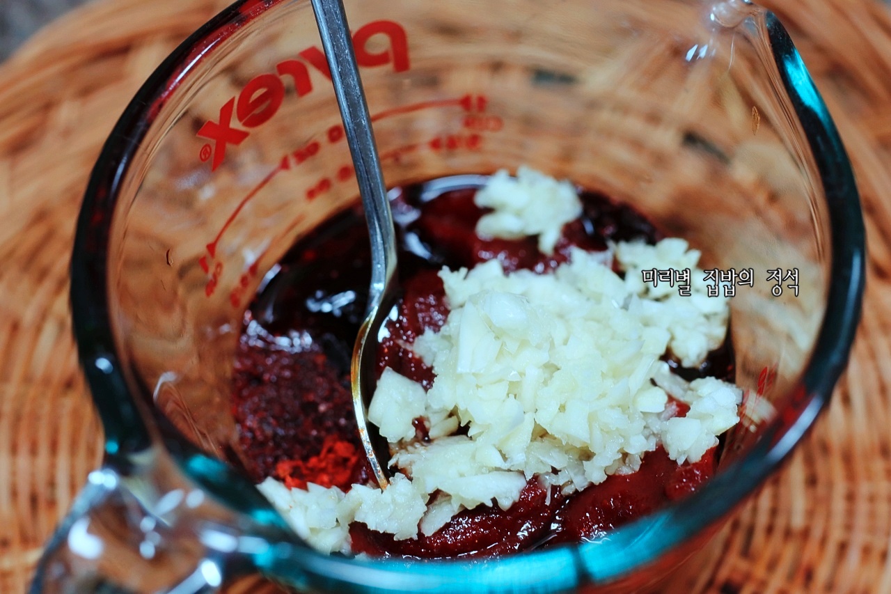 설탕 1숟가락, 올리고당 1숟가락, 매실청 1숟가락, 맛술 2숟가락, 다진마늘 1숟가락 넣어