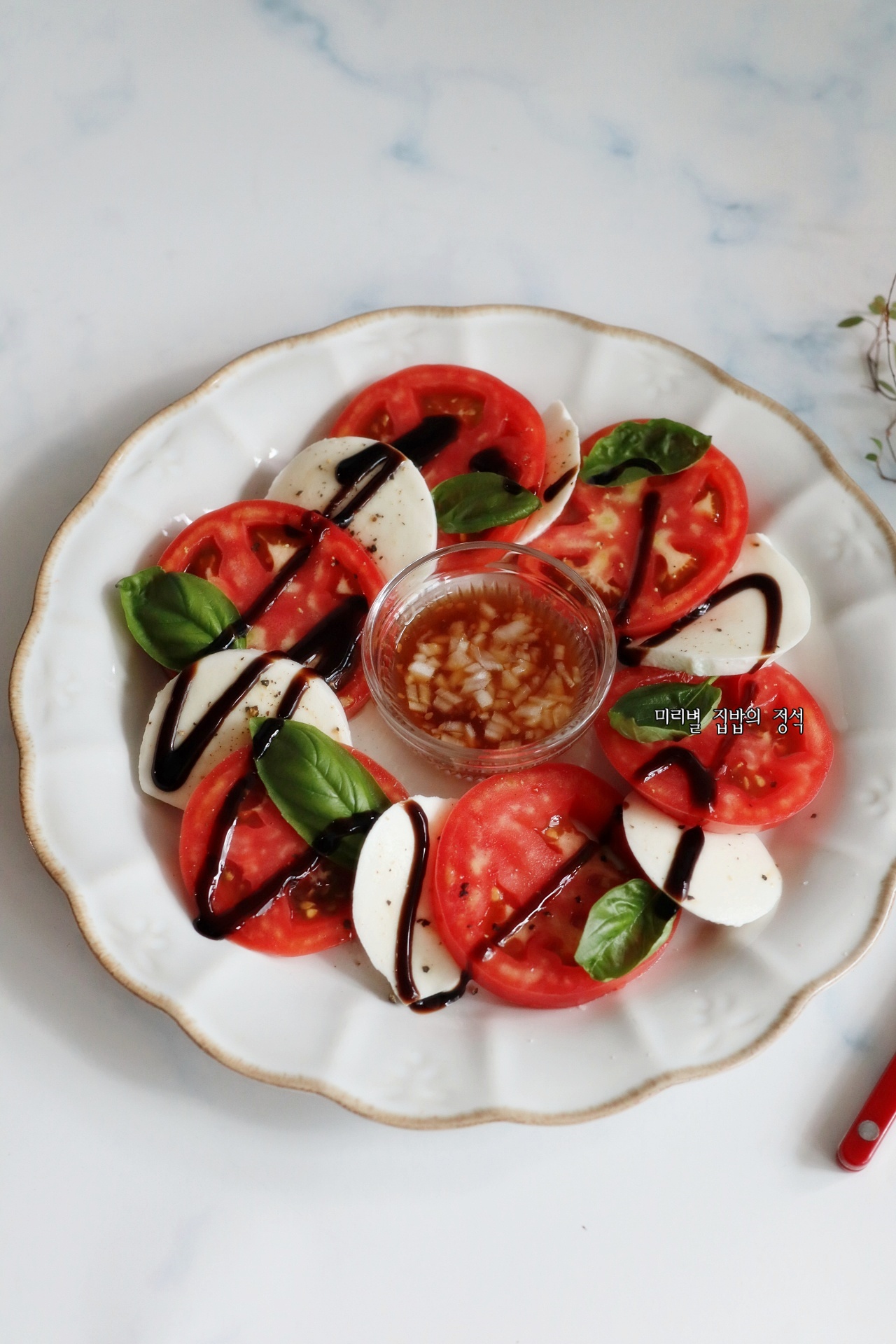 토마토카프리제소스는 발사믹소스를 곁들여주면