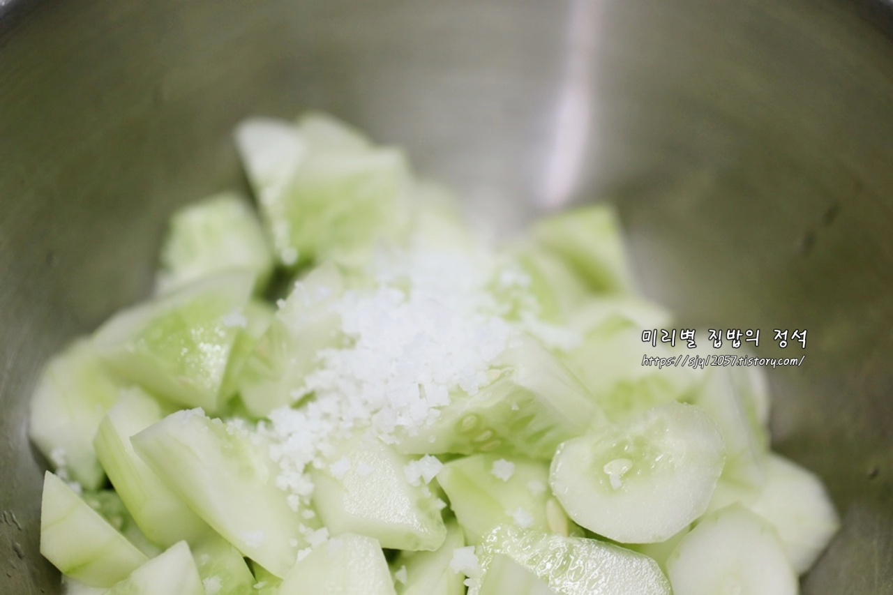 이렇게 절이면 간도 배면서 오이 자체 수분도 제거할 수 있어 좋아요~
