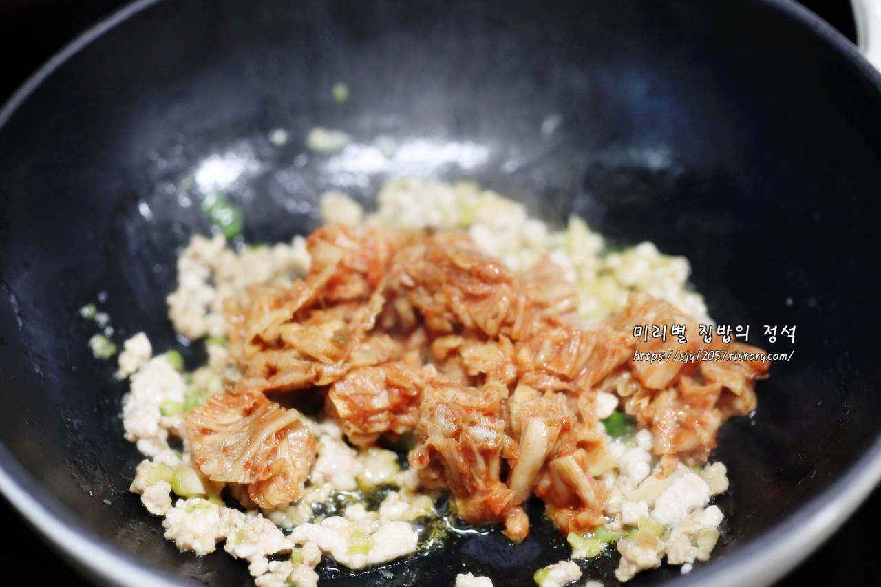 묵은지는 먹기 좋은 크기로 썰어 1/2컵 준비해 줍니다.