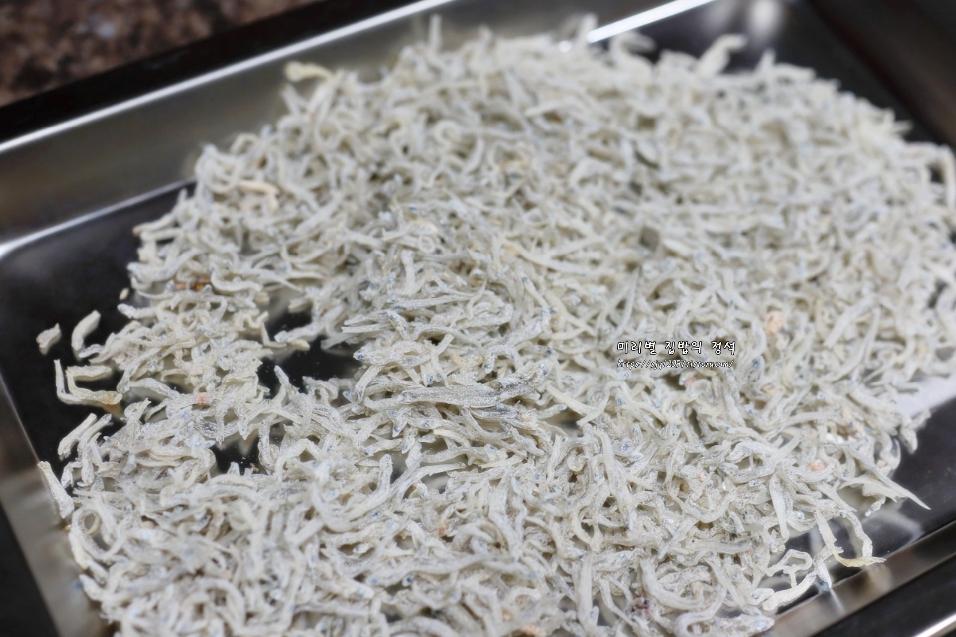 냉동실에 두었던 잔멸치라 실온에 두어 냉기를 제거하고