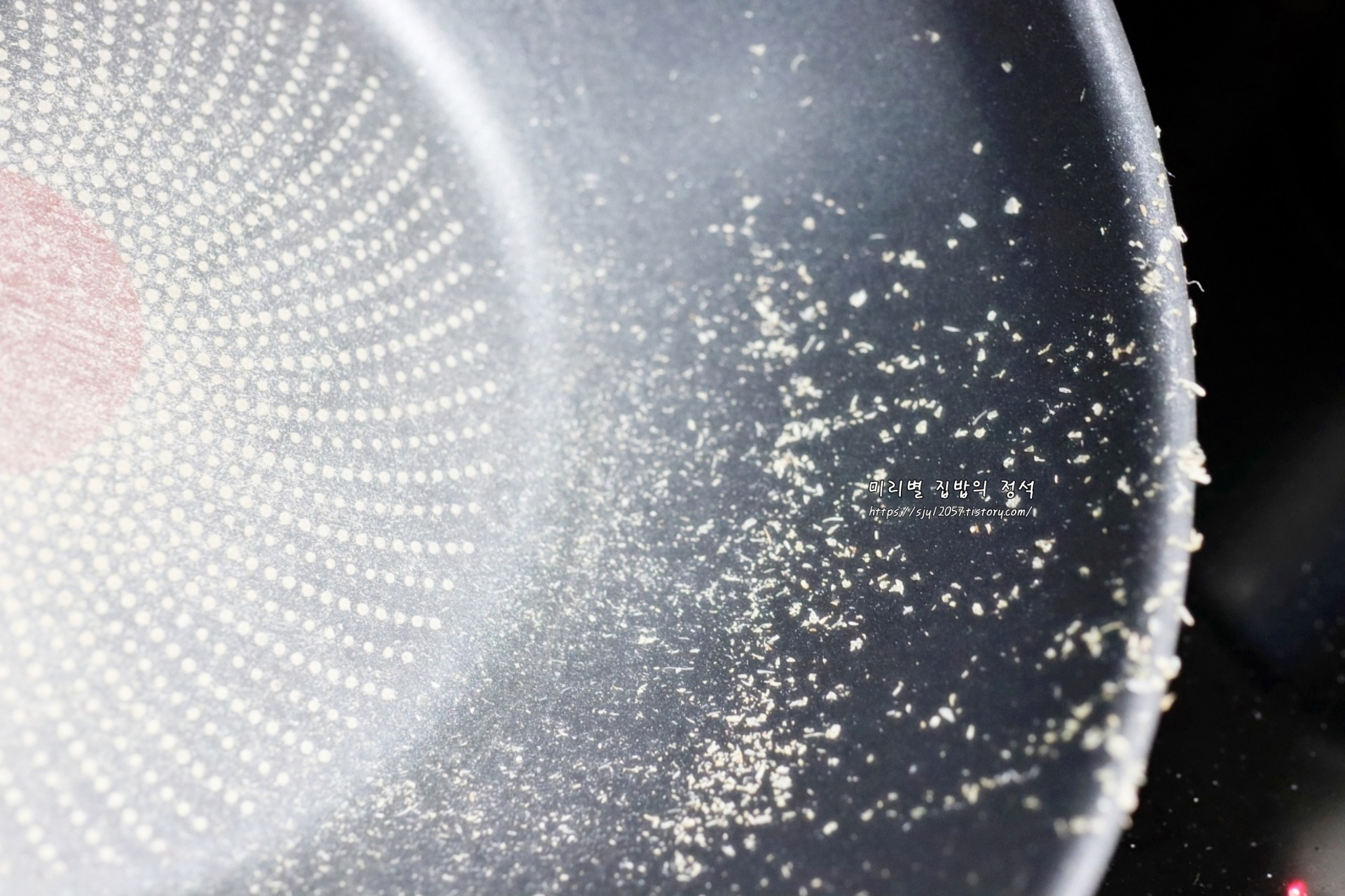 후라이팬에 묻은 부스러기는 키친타올로 닦아주세요~.