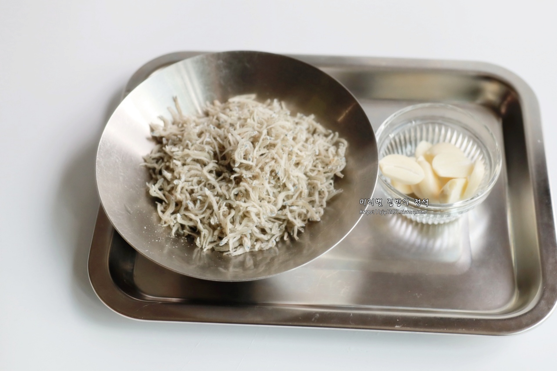냉동실에 있던 잔멸치는 실온에 30분 정도 두어 냉기를 제거하고