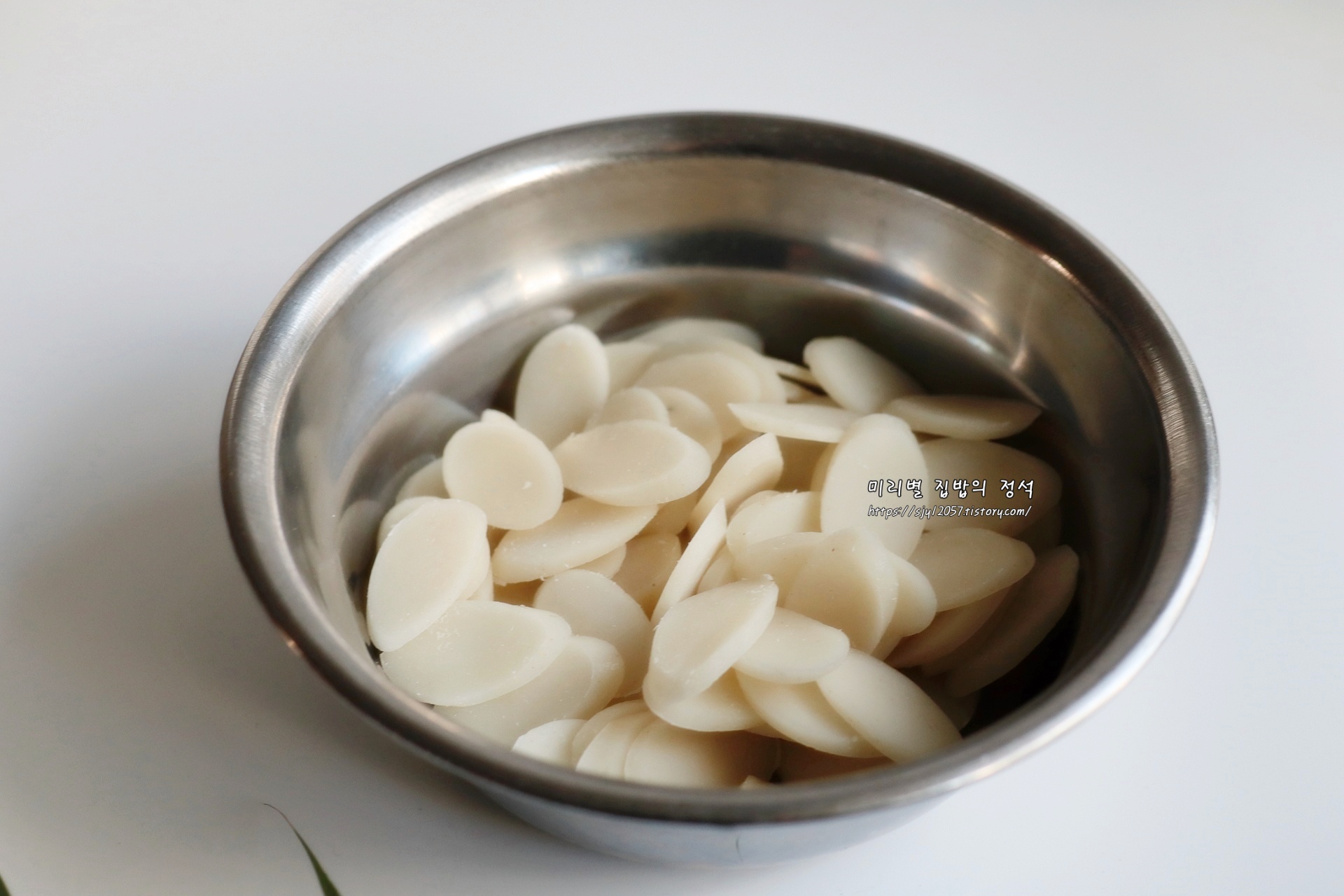 냉동실에 있던 떡국떡이라면 찬물에 10분 정도 담가 해동시켜 주고