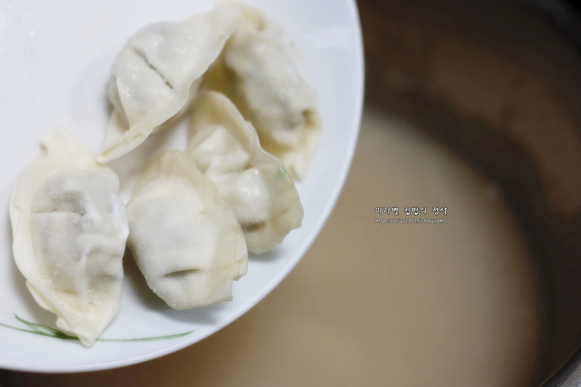 전 사이즈가 작은 물만두인지라 조금 늦게 넣어 끓였지만