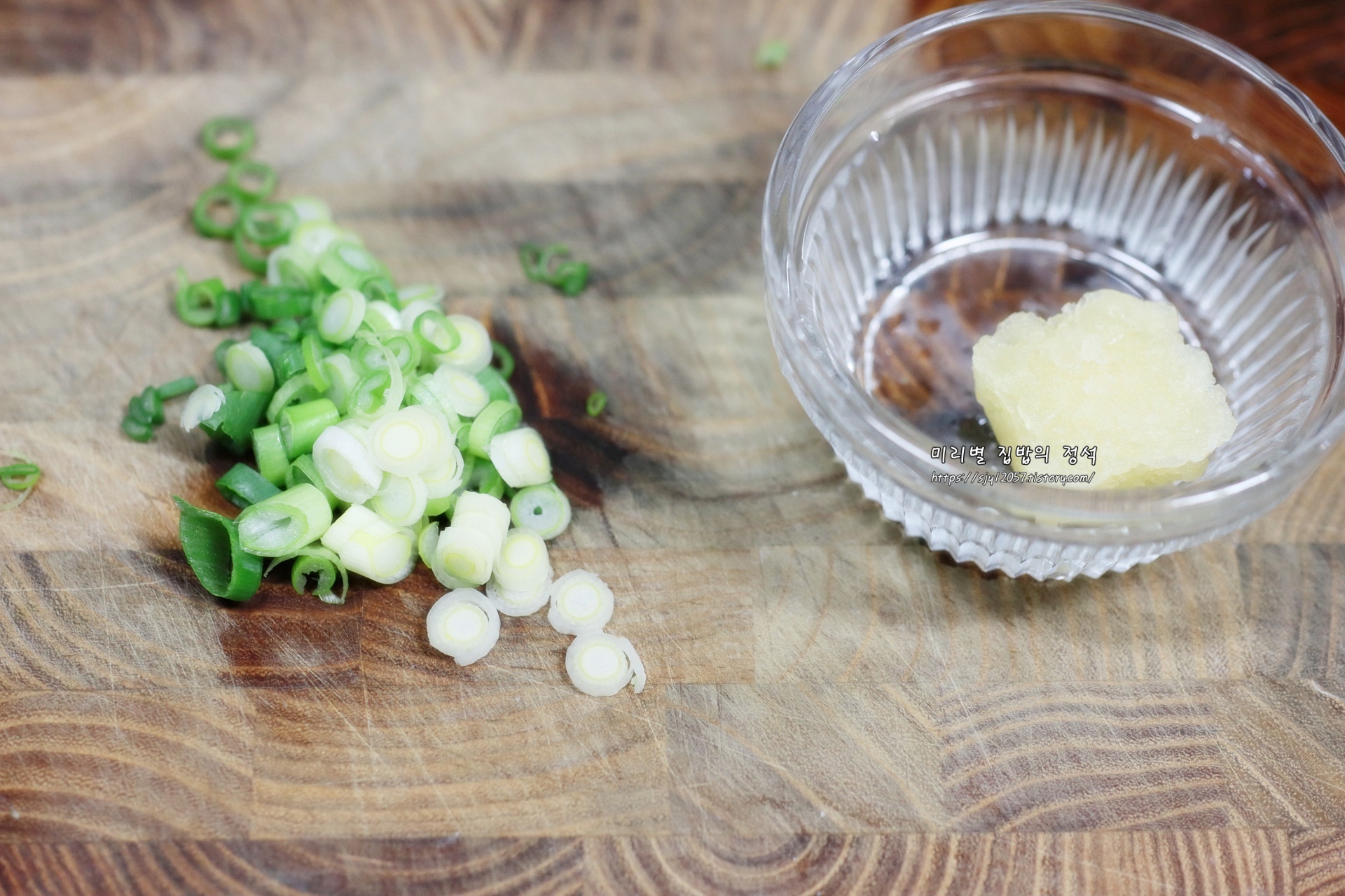 대파는 쏭쏭 썰고, 다진마늘 준비합니다.