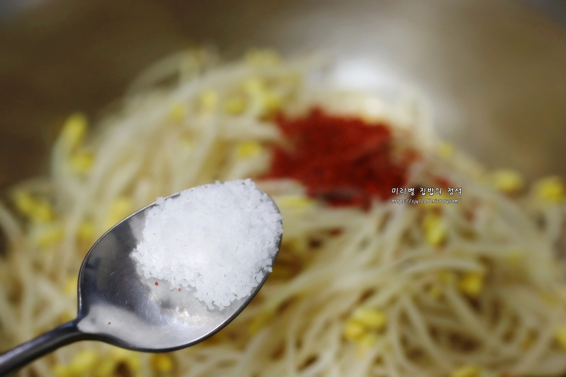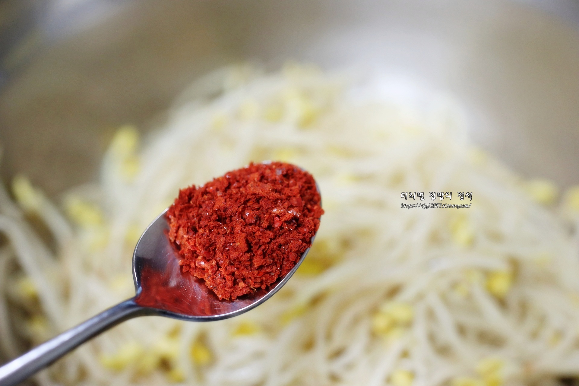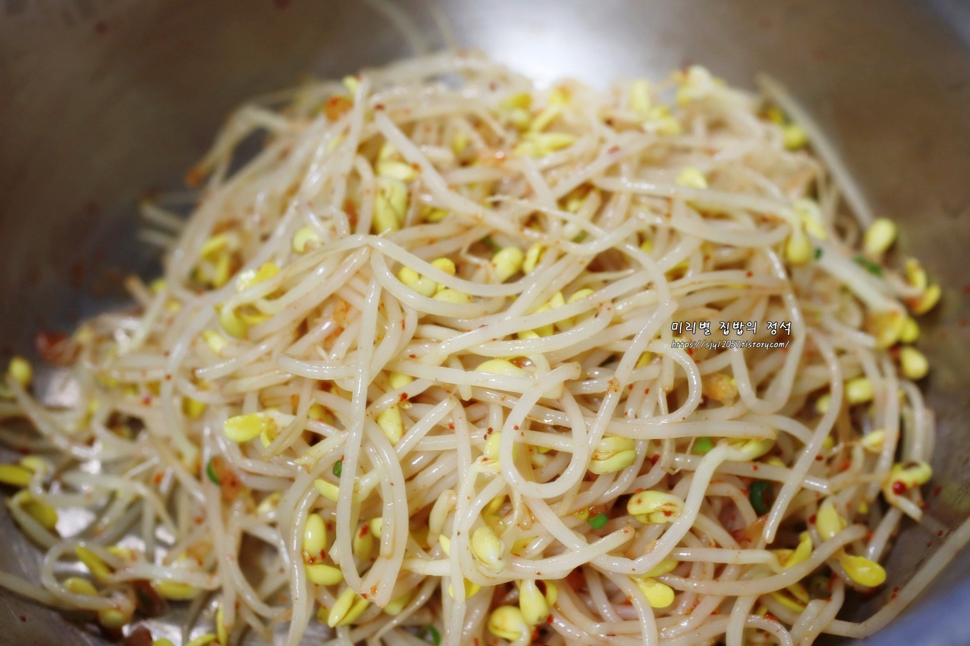 고춧가루를 넣어 빨간콩나물무침으로 만들었는데