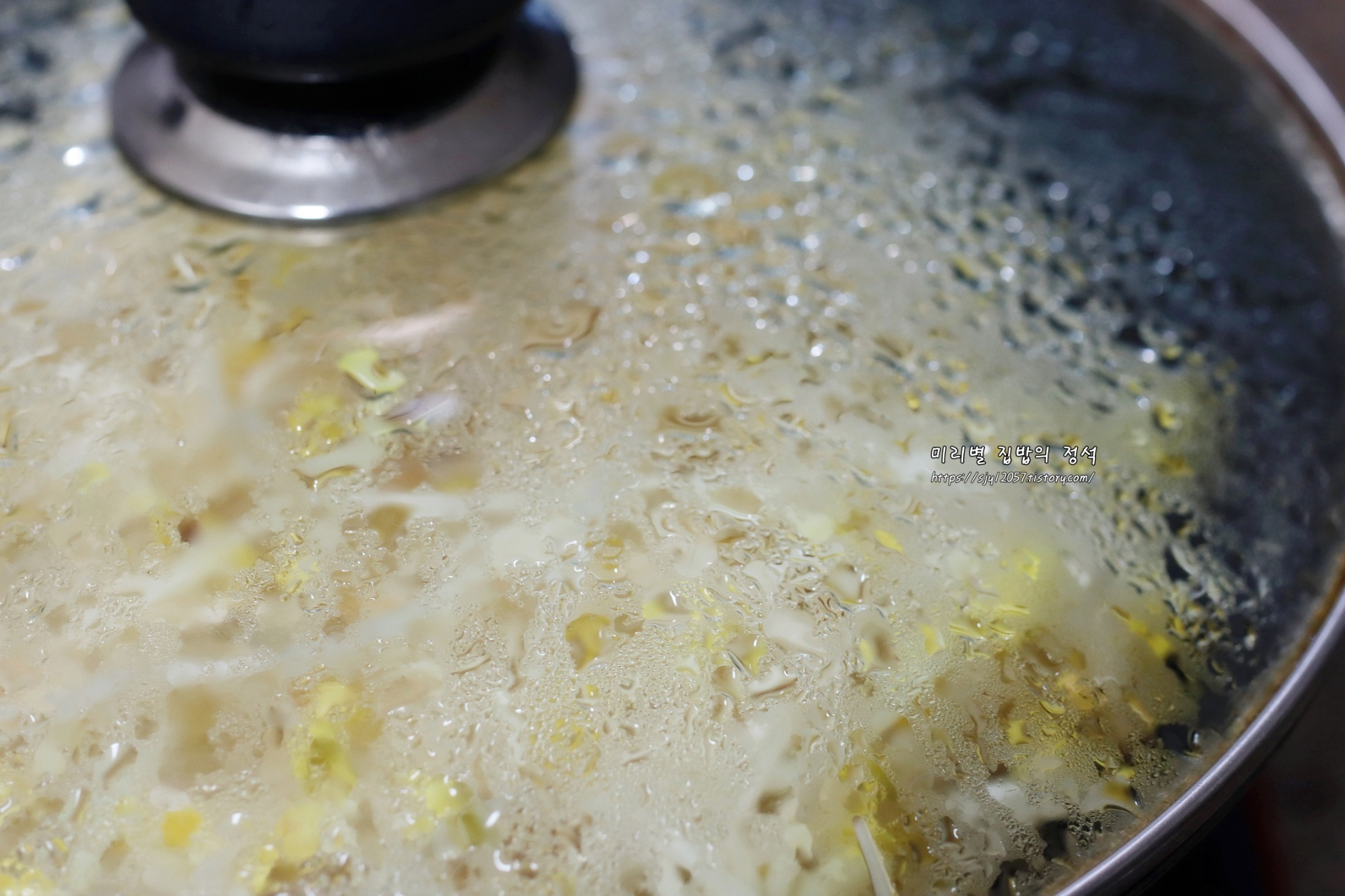 유리 뚜껑에 물방울이 송글송글 맺히면서