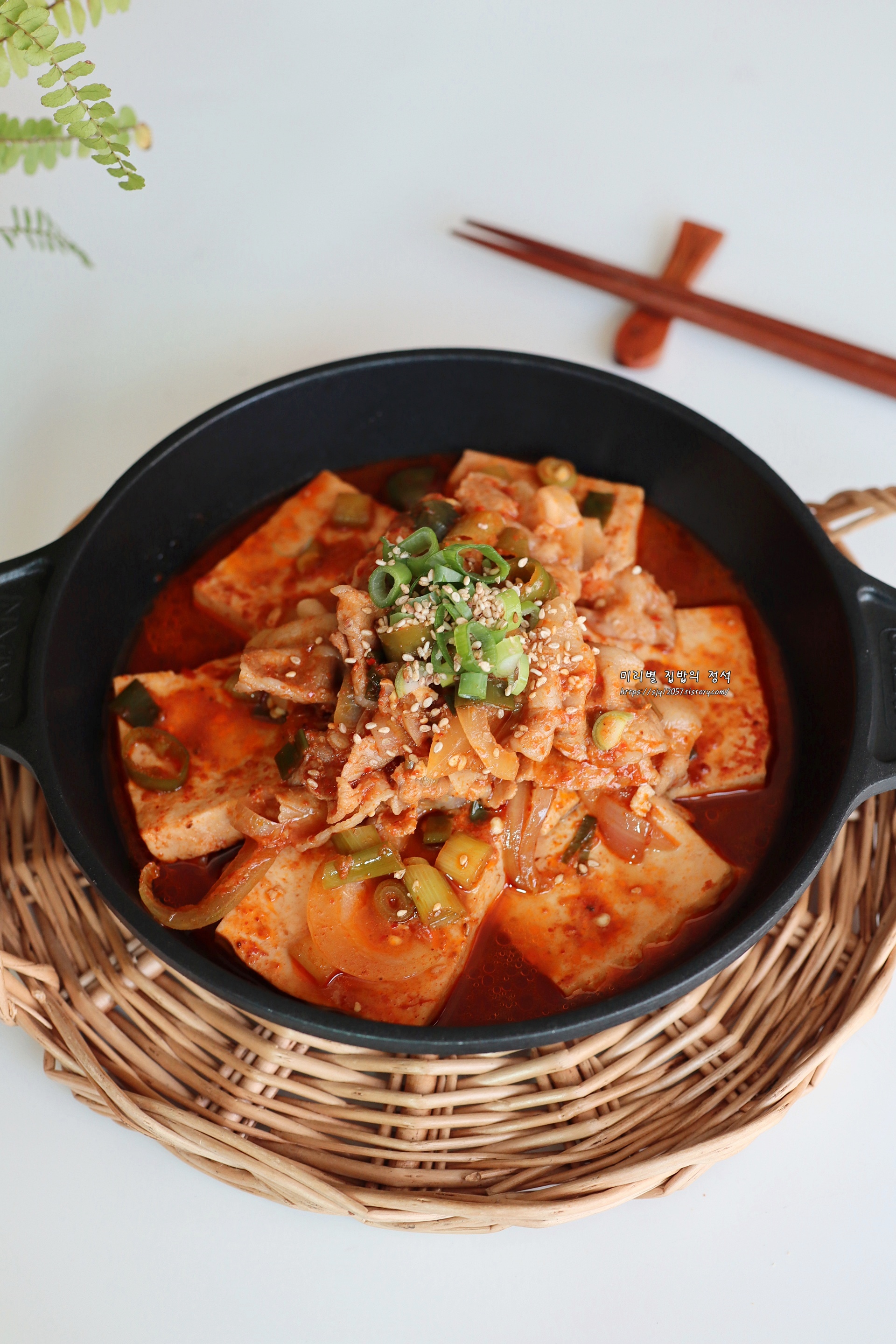 저녁메뉴 고민이시라면 두부 한 모와 대패삼겹살 넣어서 만들어 보세요~