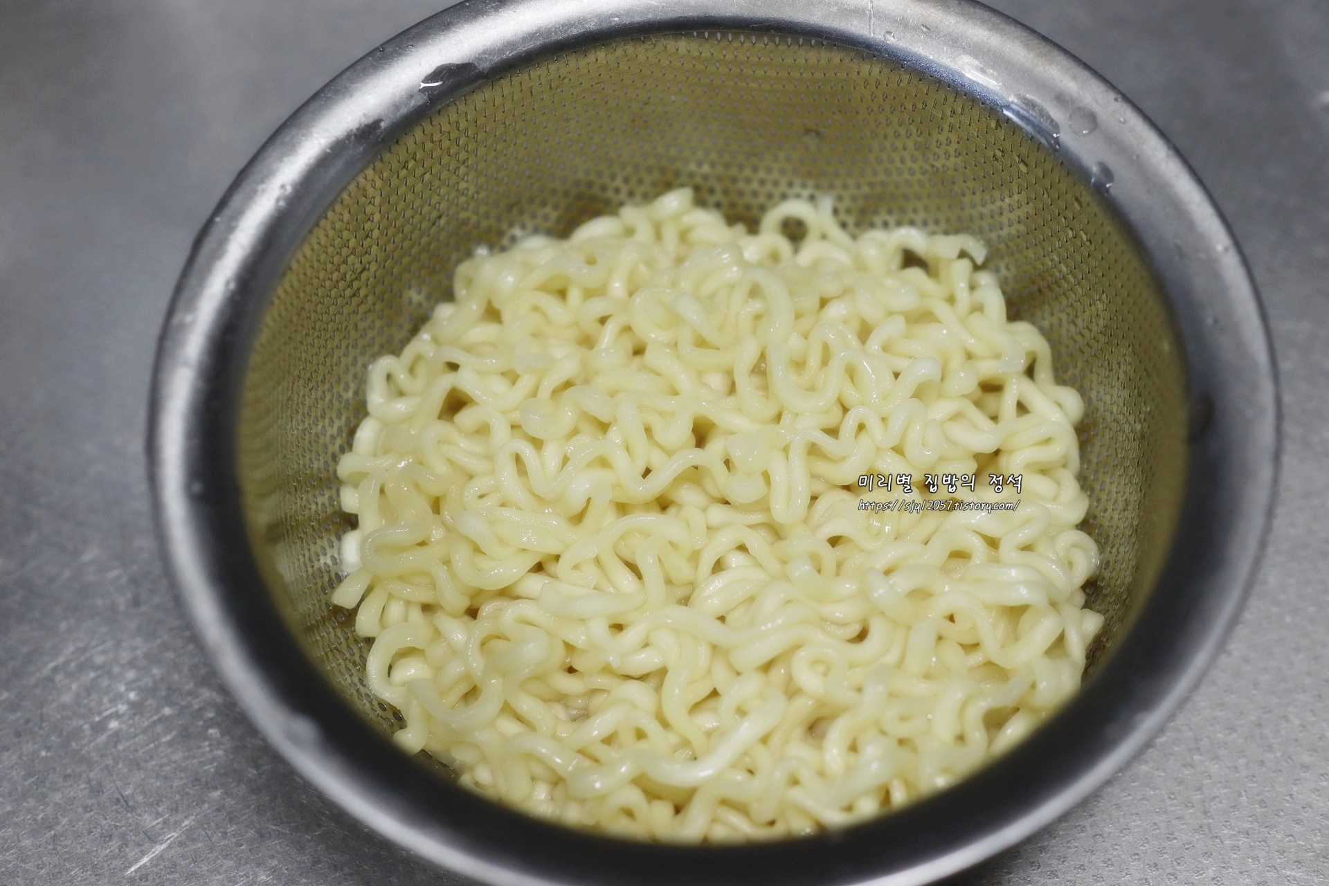 물은 1/2컵 정도 남겨두고 나머지는 다 버려요~