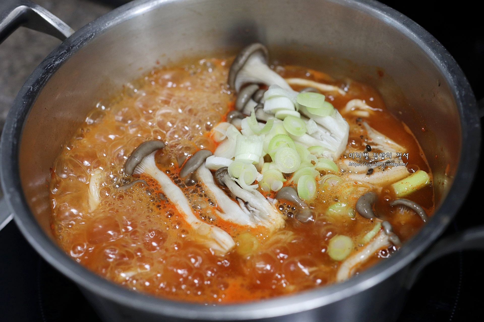 얼큰칼칼한 맛을 내기 위해 신김치를 넣어줘도 좋은데