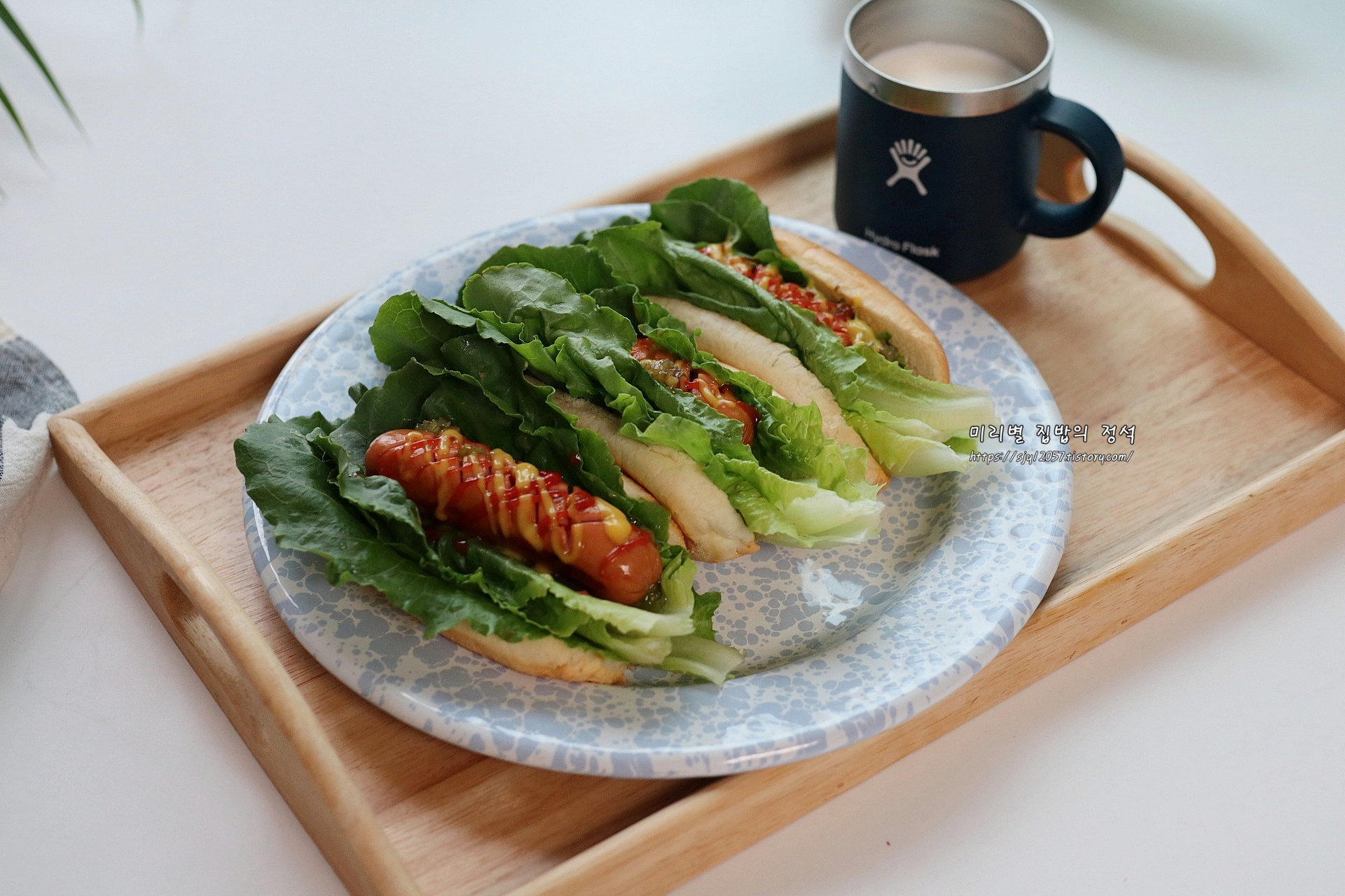 아삭한 식감이 매력적인 소세지빵샌드위치 만들기 맛있게 만들어 보세요~