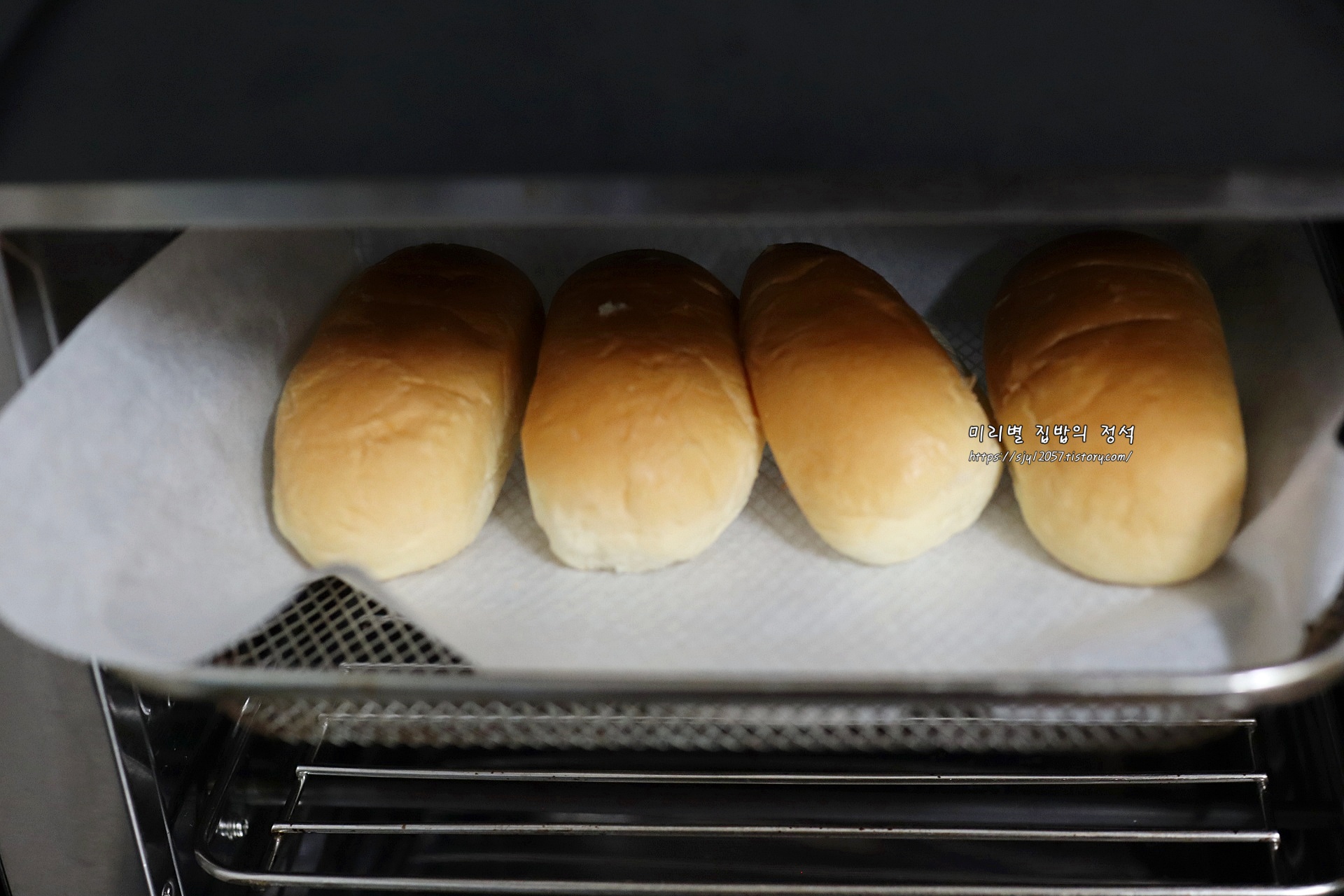 냉동핫도그번은 160도로 예열한 에어프라이어에 160도로 3분 구워줍니다~