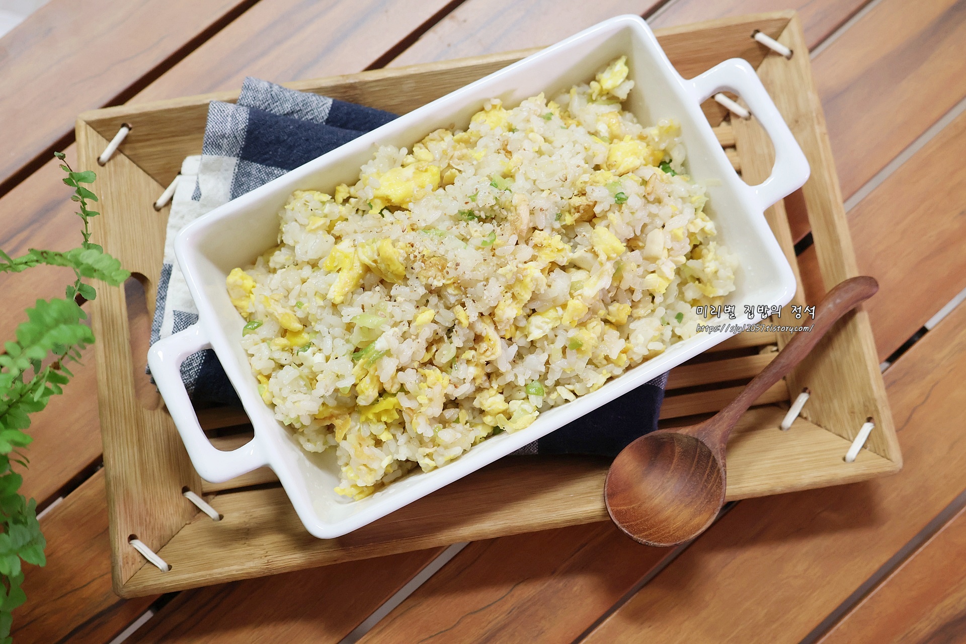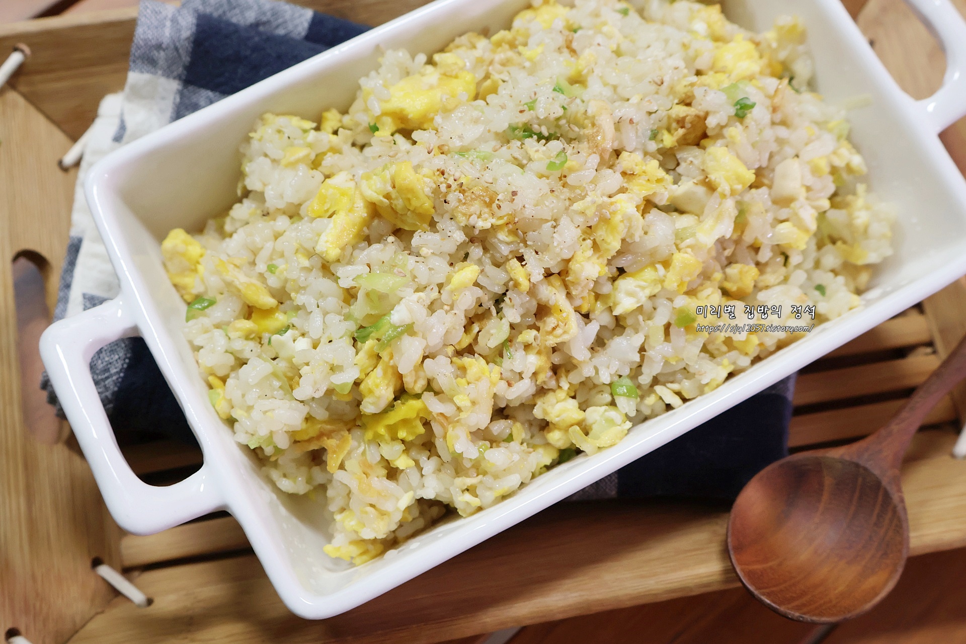 부재료로 베이컨이나 스팸을 넣어 만들면 더 풍성한 맛을 느낄 수 있는데 이번에는 간단한 아침메뉴 레시피로 계란과 대파만을 넣어 볶아 만들었습니다.
