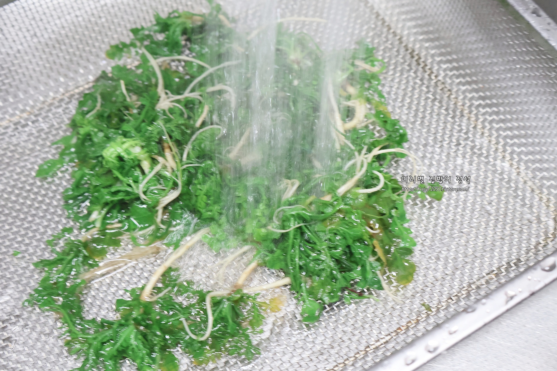 냉이 데칠 때 : 굵은 소금 1/2숟가락