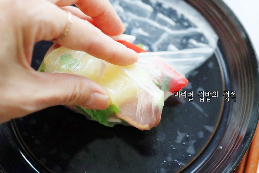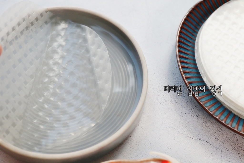 따뜻한 물에 라이스페이퍼를 10초 정도 담가두었다가