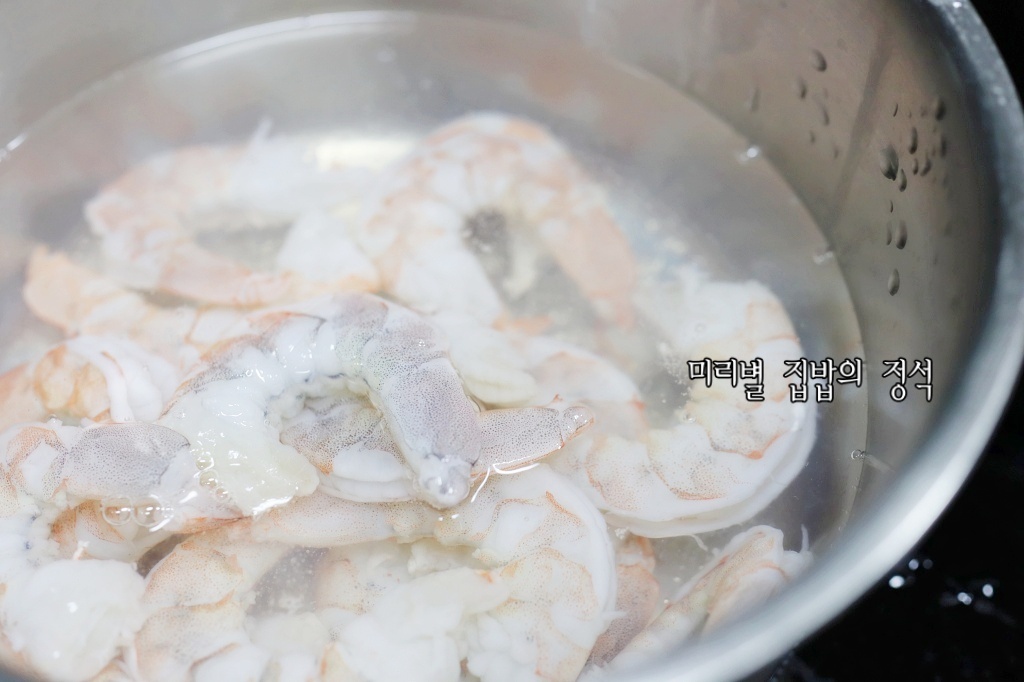 끓는 물에 데쳐주고 흐르는 물에 헹궈 주었습니다.
