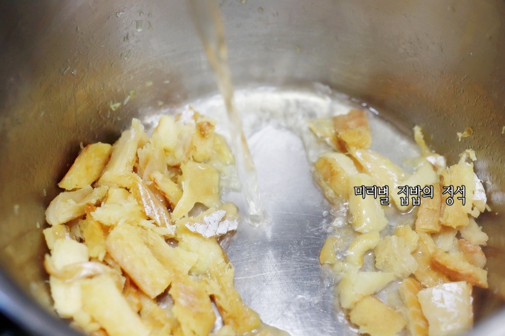 불렸던 물도 버리지 말고 육수로 사용하시면 되세요~