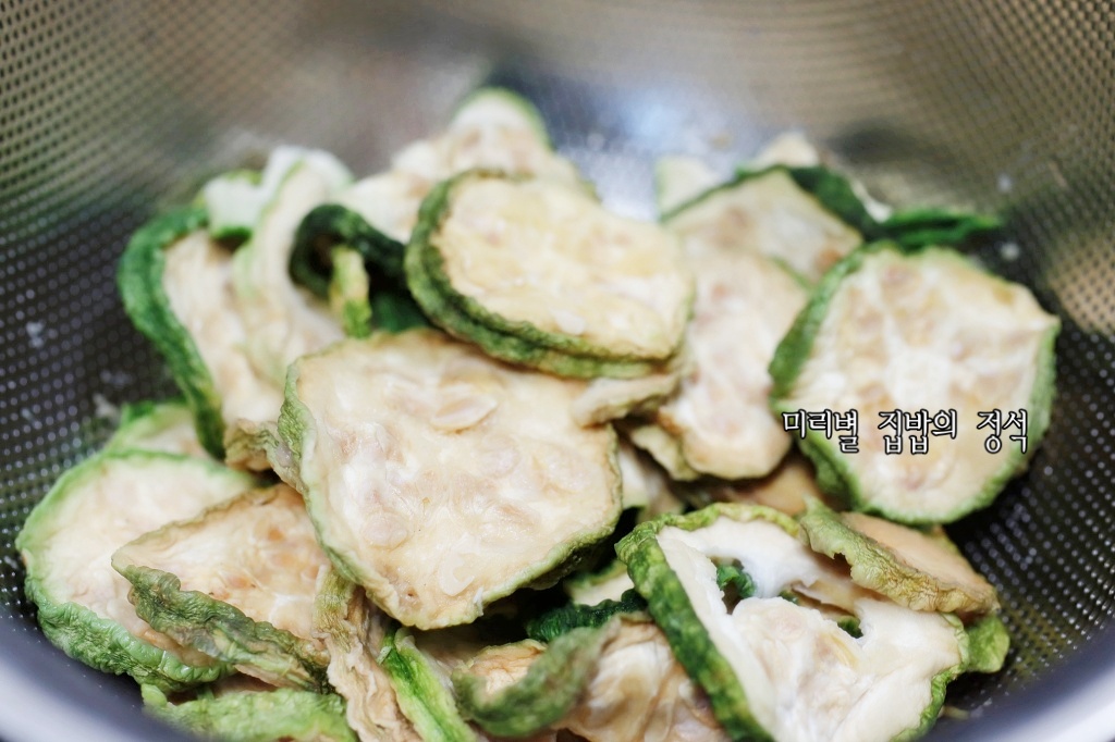 미지근한 물에 20분간 불린 호박고지는 흐르는 물에 헹군 후