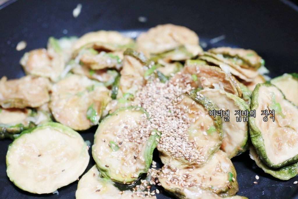 들기름 1숟가락, 통깨를 넣어 볶아 풍미를 더해주면